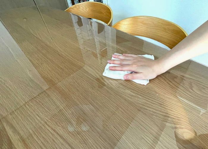 既にある傷や汚れを隠したい人も やはりぴったりサイズの厚みのある透明テーブルマットを用意し、その下に薄い布を敷くと良いでしょう。
