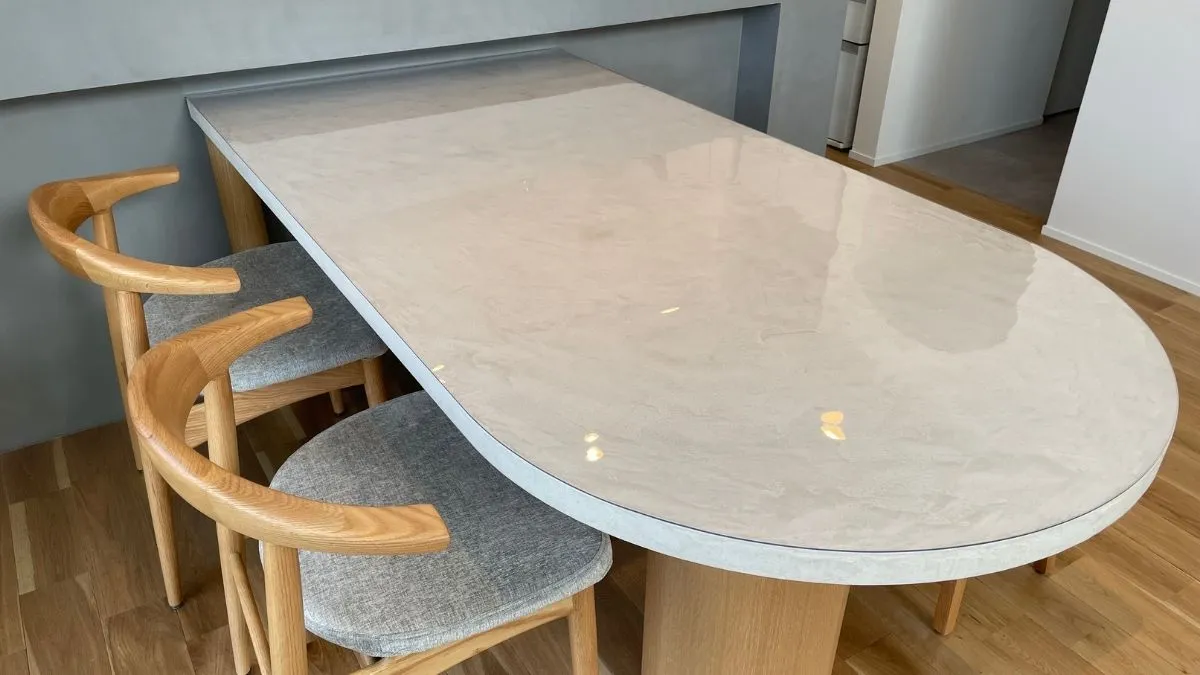 ガラス天板や鏡面仕上げなどツルツルしている天板にマットを敷くと、テーブルとマットの間に空気が入ってまだら模様になり見た目が悪くなる場合があります。