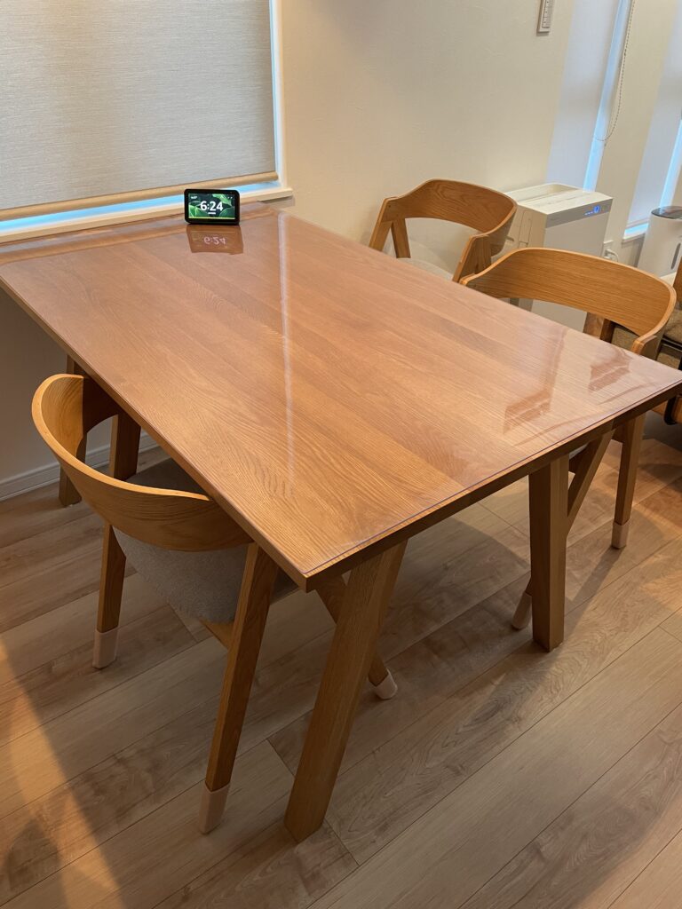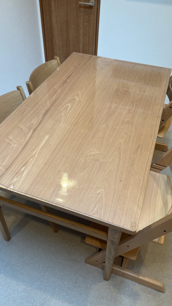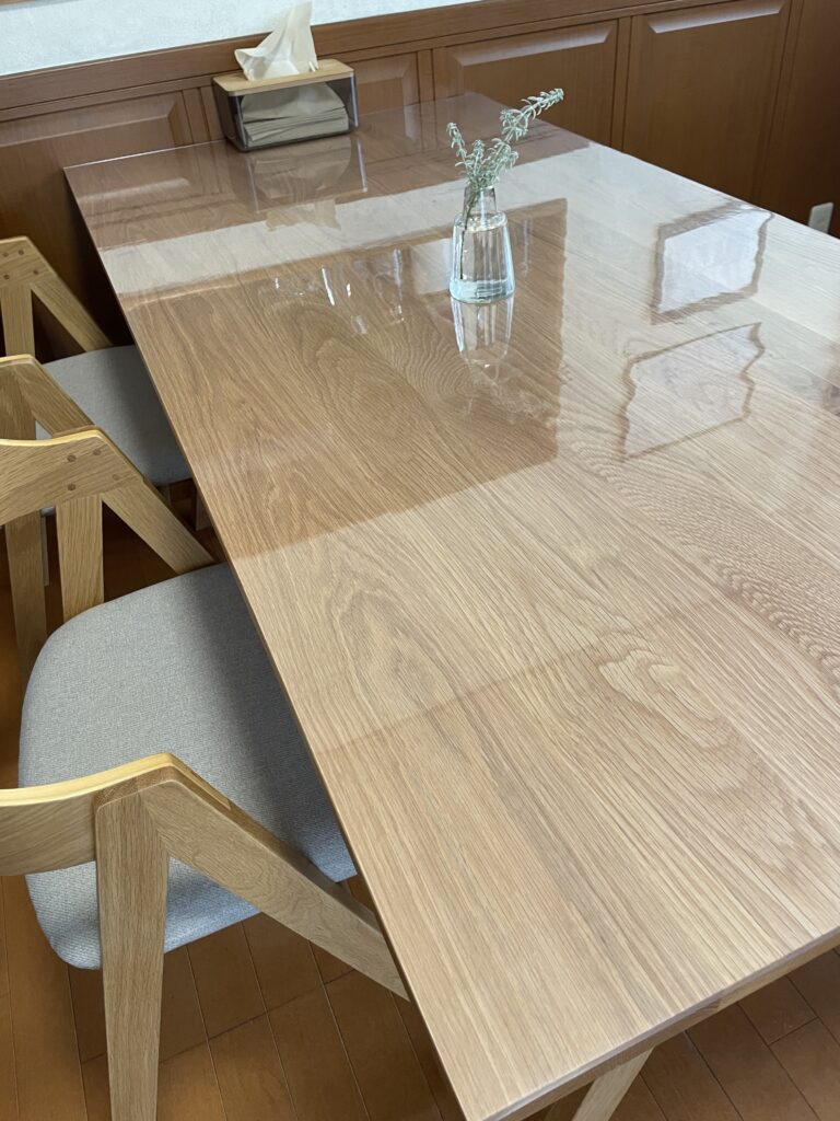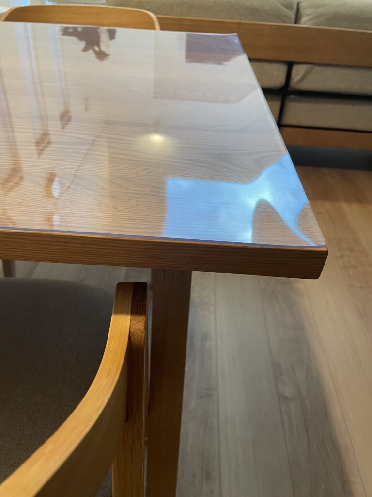 色んなメーカーの無垢テーブルに透明マットを敷いた事例を集めました