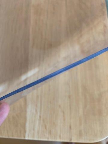 テーブル幅が950ミリということもあり、今まではホームセンターで購入したサイズの全く合っていない透明のビニールクロスを敷いていましたが、来月親戚が集まるのを機に買い替えることにしました。ネットで調べていましたところ、非常に情報量の多い「透明テーブルマット工房」を見つけ、お願いした次第です。