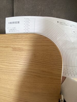 しかしテーブルのカーブの角度を測るのが大変、と思いましたがこちらのホームページにR測定簡易定規があり、印刷して何度も測定を重ね無事ピッタリなサイズのマット購入に至りました。