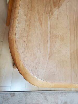 テーブルの天板に光沢はない方がいいけど、該当のテーブルは傷が味にならないという評判を聞き、傷がつかないように気を使いながら使用したくないという消極的な理由で購入しました。