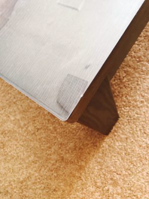 ホームセンターの切り売りをテーブルに巻き付けて養生テープで貼っていたが見た目が悪く、来客時に不格好な為御社のオーダーカットを利用しました。
