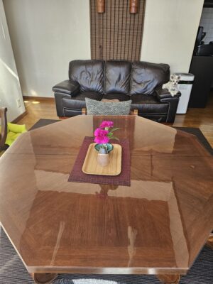 今も若干大きめではありますが、食後アルコールでテーブルを拭けるようになり、テーブルが使いやすくなりました。