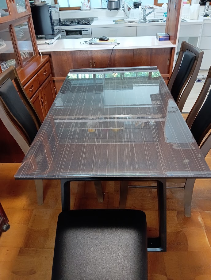 テーブルクロスだとテーブル自体隠れてしまいますし、ビニールクロスもテーブルの格を落としてしまうように感じます。