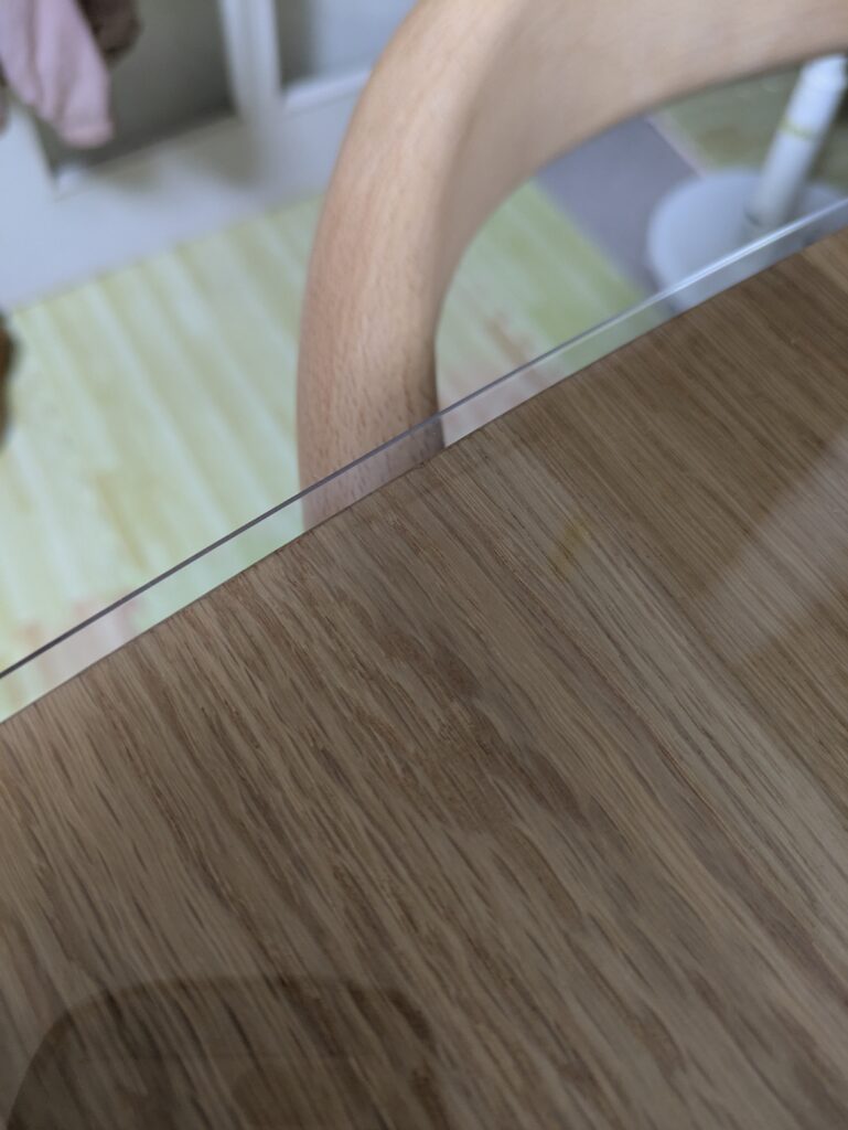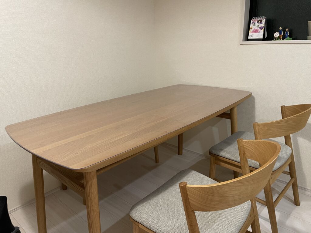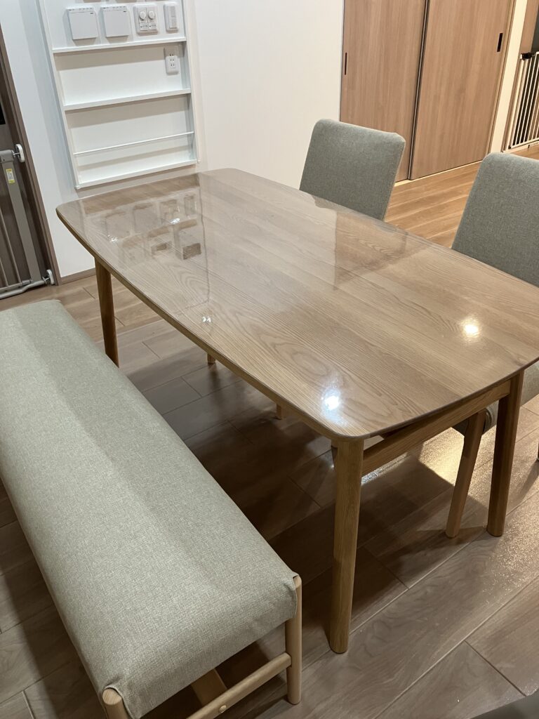 引っ越しのため新しくダイニングテーブルを購入。マットを敷かずに水を溢すと水染みができるので注意してくださいとのこと。