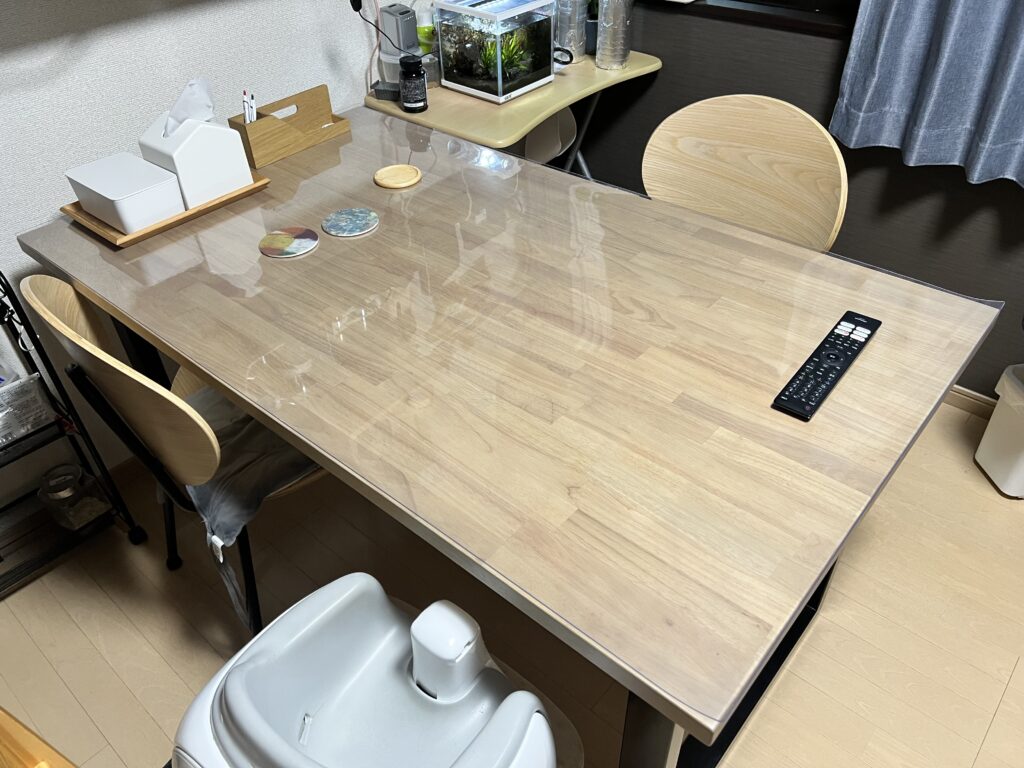 我が家は小学生と幼稚園の子どもがいるため鉛筆汚れや食べこぼしを防ぐのに透明マットが必要不可欠でした。