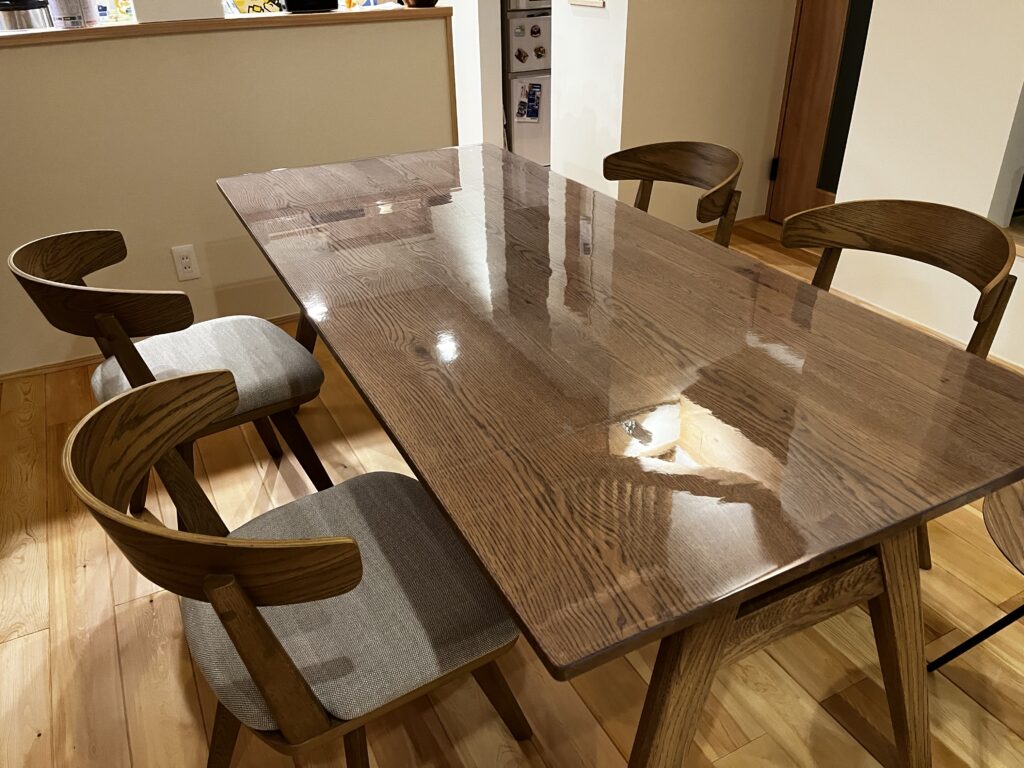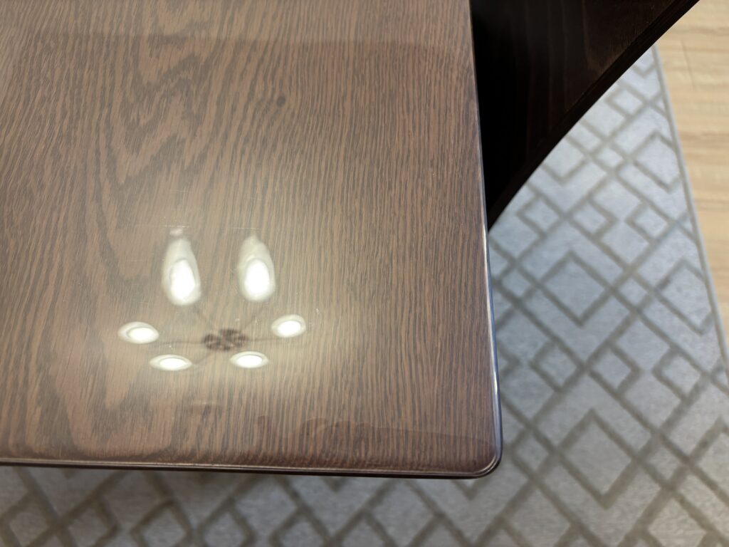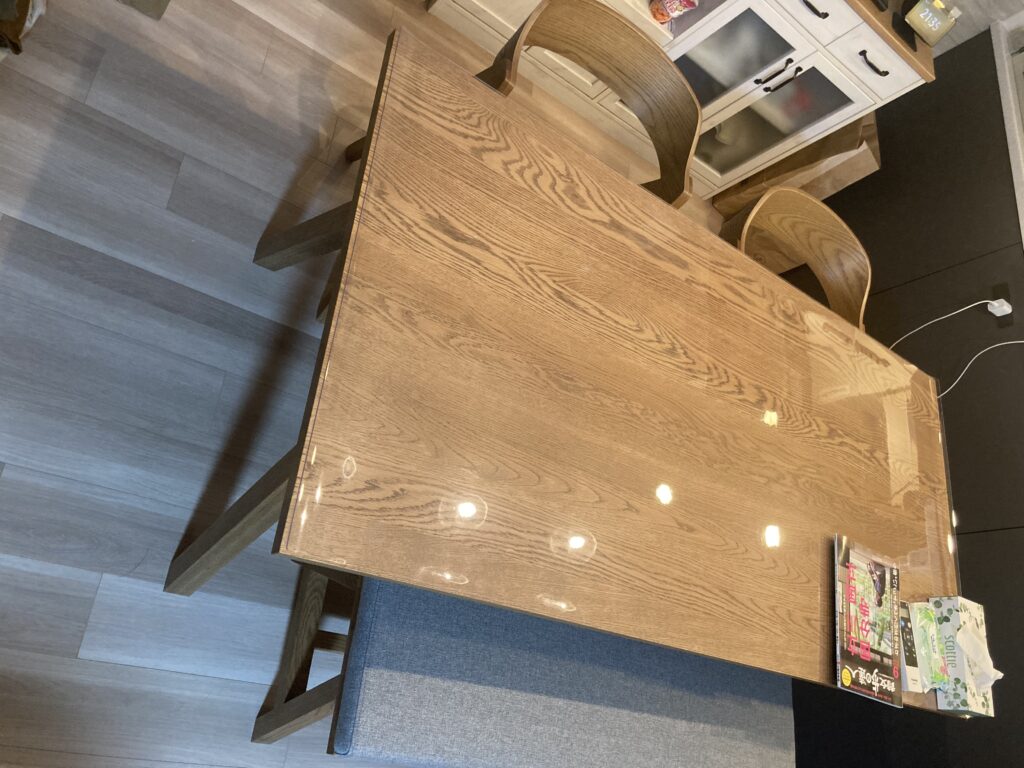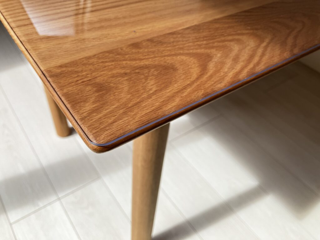 とても透明なマットで(子供がマットに気づかなかったくらい)、天板の木目が楽しめます。