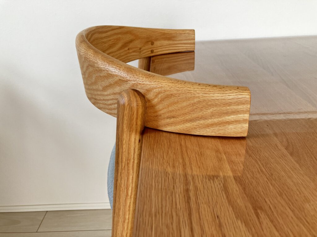 SOVIの椅子はアームをテーブルの天板に掛けられるの特徴ですが、マットが1枚あるおかげで傷を気にすることなく掛けられるのも良いです。