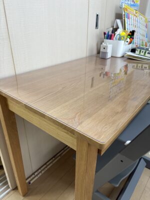 無印の棚付き学習机(2025年8月購入)だったので、机に合うデスクマットはこれしかないと思って購入を決めました。