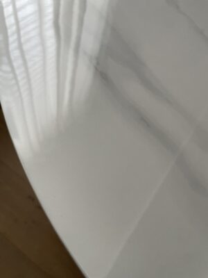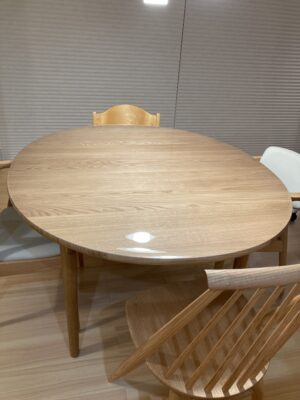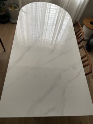アビタス家具屋でオーダーした半分円形のセラミックテーブルです。