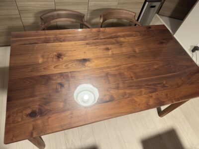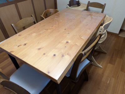 ニトリで買って使ってたダイニングテーブルがダメになり、新しく刑務作業品のダイニングテーブルを購入しました。