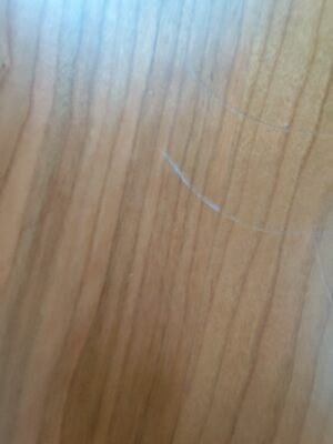 ウレタン塗装したが、犬がテーブルの上に乗ったようで気付いたら傷ができていました。