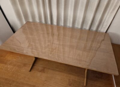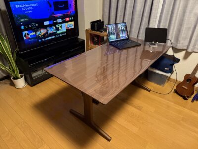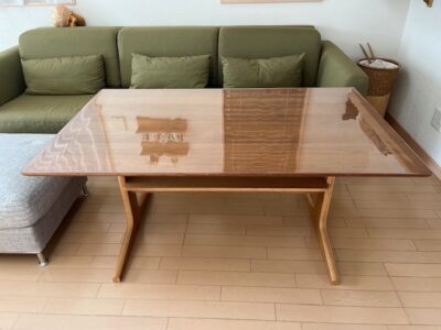 テーブルの天板に光沢はない方がいいけど、該当のテーブルは傷が味にならないという評判を聞き、傷がつかないように気を使いながら使用したくないという消極的な理由で購入しました。