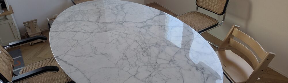カーブ部分もテーブルにぴったりで、厚みもあり、こどもの食べこぼしなどの汚れから解放されました。