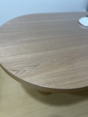 同テーブルのレビューでテーブル規格サイズだと少し大き目なようでしたので長辺/短辺共に-2mmでオーダーしました。