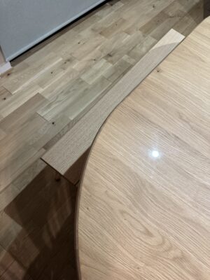 ペニンシュラ型の変形なので対応できるお店を探していたところ、ジャーナルのPORTOの実績があり、注文方法もわかりやすく掲載されていたので、透明テーブルマット工房さんにお願いしました。