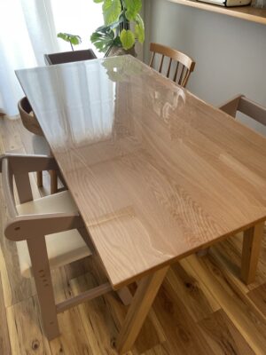 この度新しいダイニングテーブルを購入するということで、子供もまだ小さいということもあり、汚れや傷が気になるためテーブルマットを購入することにしました!