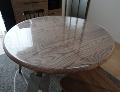 今までランチョンマットを使っていましたが、透明マットにしたことで木目が見えて嬉しいです。