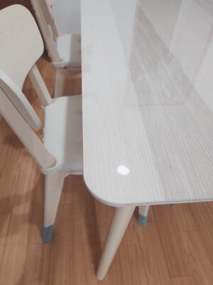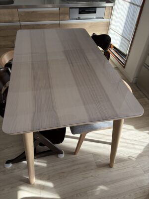 以前のテーブルは天板がガラスだったので汚れや傷は気にせず使っていたけどリーサボーはちょっと心配。