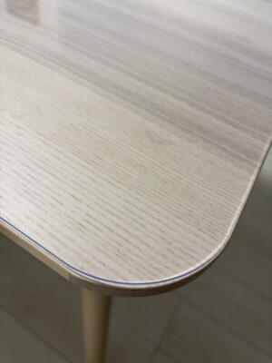 年末年始をはさんでいましたが、お知らせいただいた納品日どおりに商品が届きました。明るい天板の色や木目を損なわない透明度とカーブのところもぴったりのサイズで家族も「いいねー」と喜んでいます。