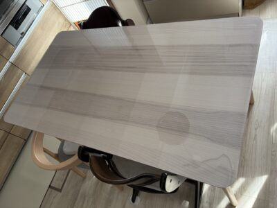角が鋭角で腕に当たって痛いという口コミがあり心配していましたが、テーブルの高さが合っている大人が使う分には許容範囲かと思いました。