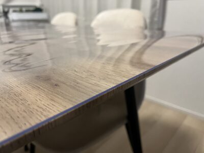 ネットで検索して偶然”透明テーブルマット工房”さんを見つけ、オーダーサイズで注文でき、納期も早い上値段も手ごろだったため購入を決めました。