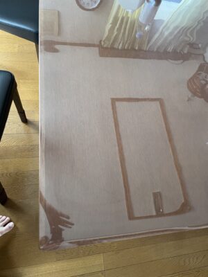 裏面をサラサラに加工してあった純正と違い、こちらはテーブルにピターッと貼り付く仕様です。