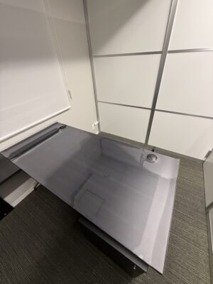 以前は、同サイズのテーブルにガラスを乗せてカバーしておりましたが