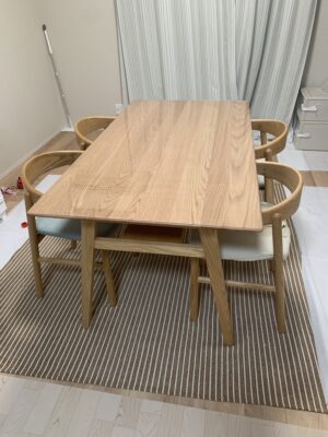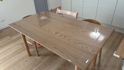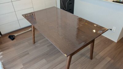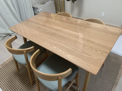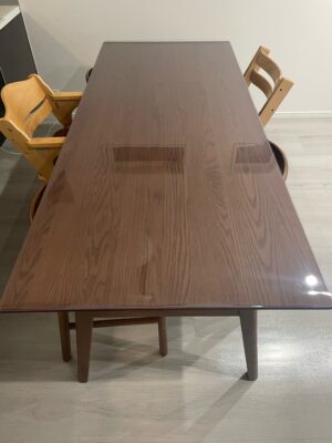 ダイニングテーブル&チェアの購入を検討している時から、子供が小さいため何かしら傷や汚れを防止するマットが敷きたいと思っていました。たまたまInstagramを見ていたらこちらのテーブルマットが紹介されていて、ブランドごとにぴったりのサイズにカットして販売されているのを知りました。購入された皆さんのコメントもかなり参考になり、信じて購入に踏み切りました。そして、今日届きテーブルに敷いてみたところ、皆さんのコメント通り、透明でテーブルの表情は変わらず見えて嬉しかったです。