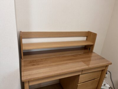 長く使えるように、またしばらくはリビングで使う予定なので、シンプルな机を選びました。