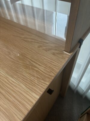 透明なので木目もいかせるし、上置きの棚の切り欠きや、角の丸みもピッタリでした。