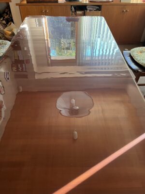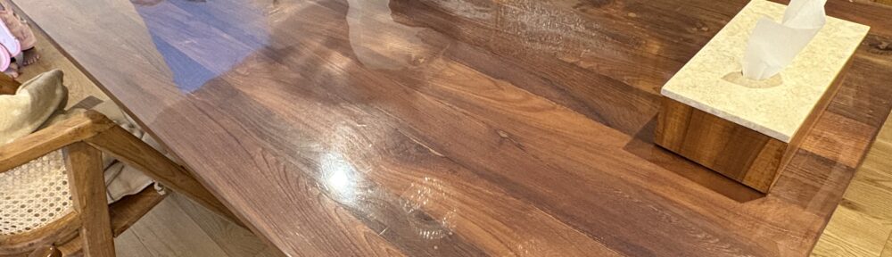 テーブルの質感がそのまま見えて新品に戻ったようです。