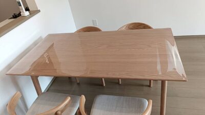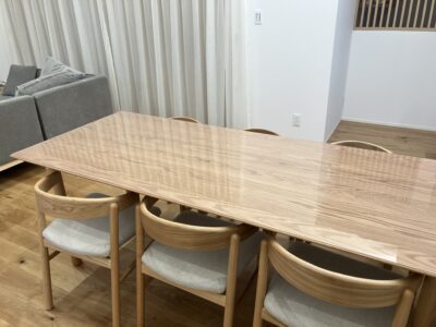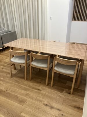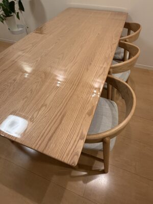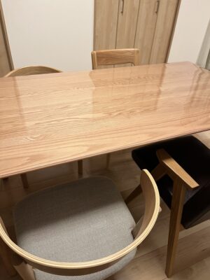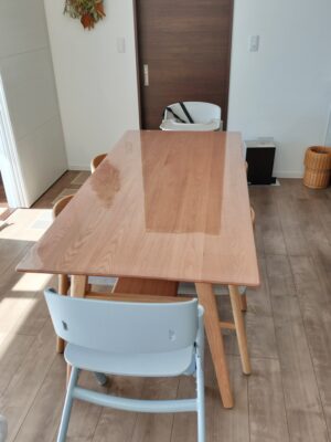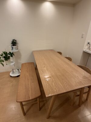 長方形の端がカットされた多角形のダイニングテーブルだったので何処で購入しようか悩みました。