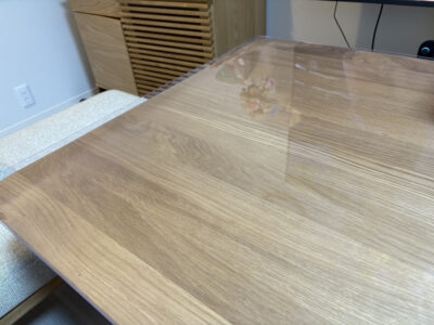引っ越しを機に新調したテーブルがオイル塗装のため、水拭きができない…でも小さい子どもがいるからすぐ汚れる…と悩んでいた時にこちらの商品を見つけました。