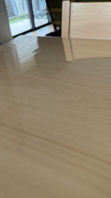 実際に使用してみると、こういったものにありがちな嫌な匂いはほとんどせず、また艶がありテーブルの木目も損なわれることがなく、とても満足しています。