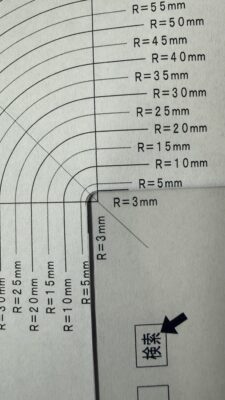 角はクレジットカードよりは丸みがあったためR5mm、カタログスペックは850×1500ですが、丸みのある天板なので平らな部分を計測し、少し小さめでオーダーしました。