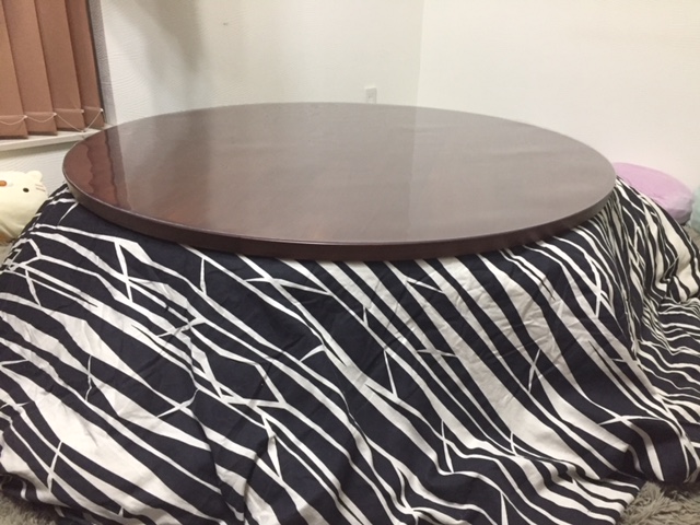 アルコール消毒ができるようにとこたつにビニールマットを敷きました