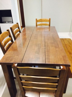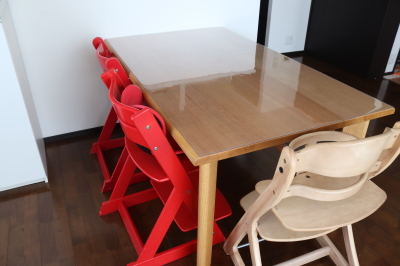 ナフコのテーブルに透明マットを敷いた事例をご紹介します。