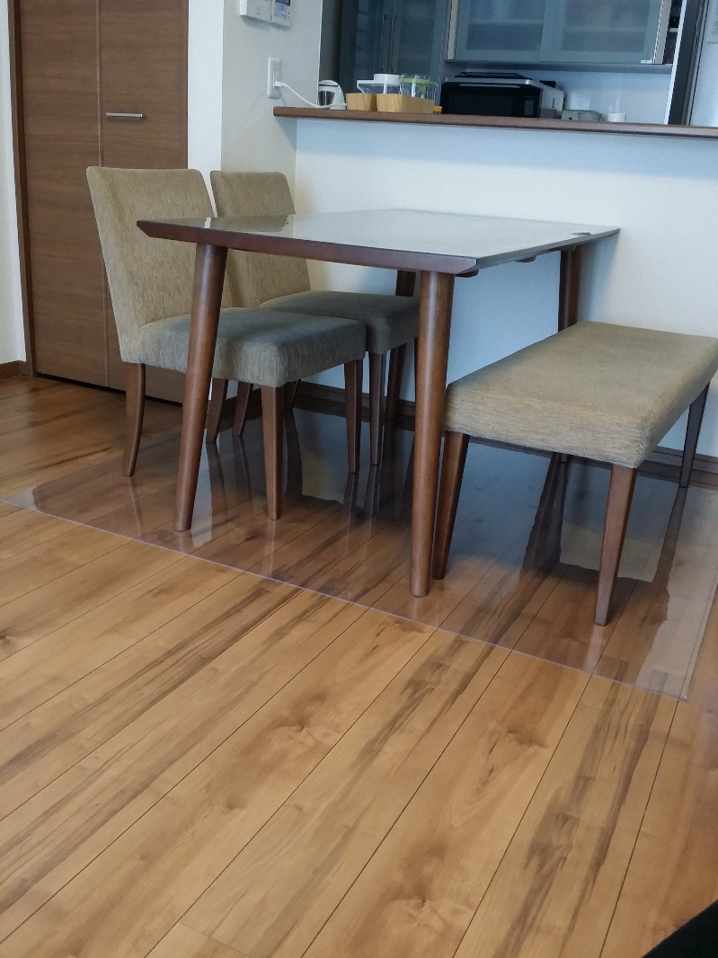 当店・透明テーブルマット工房のビニールシートは、床に敷くフロアマットとしてご購入いただいています。